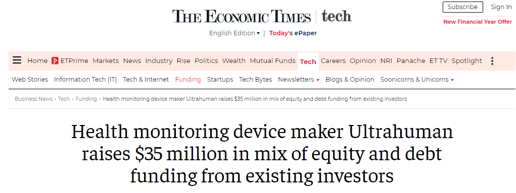 From its humble roots, it's rapidly evolved into a full-fledged healthcare company, tackling the global metabolic health crisis head-on. In their most recent financing round, the startup raised $35 million in a mix of equity and debt. This brings Ultrahuman’s total fundraise so far to $65 million.