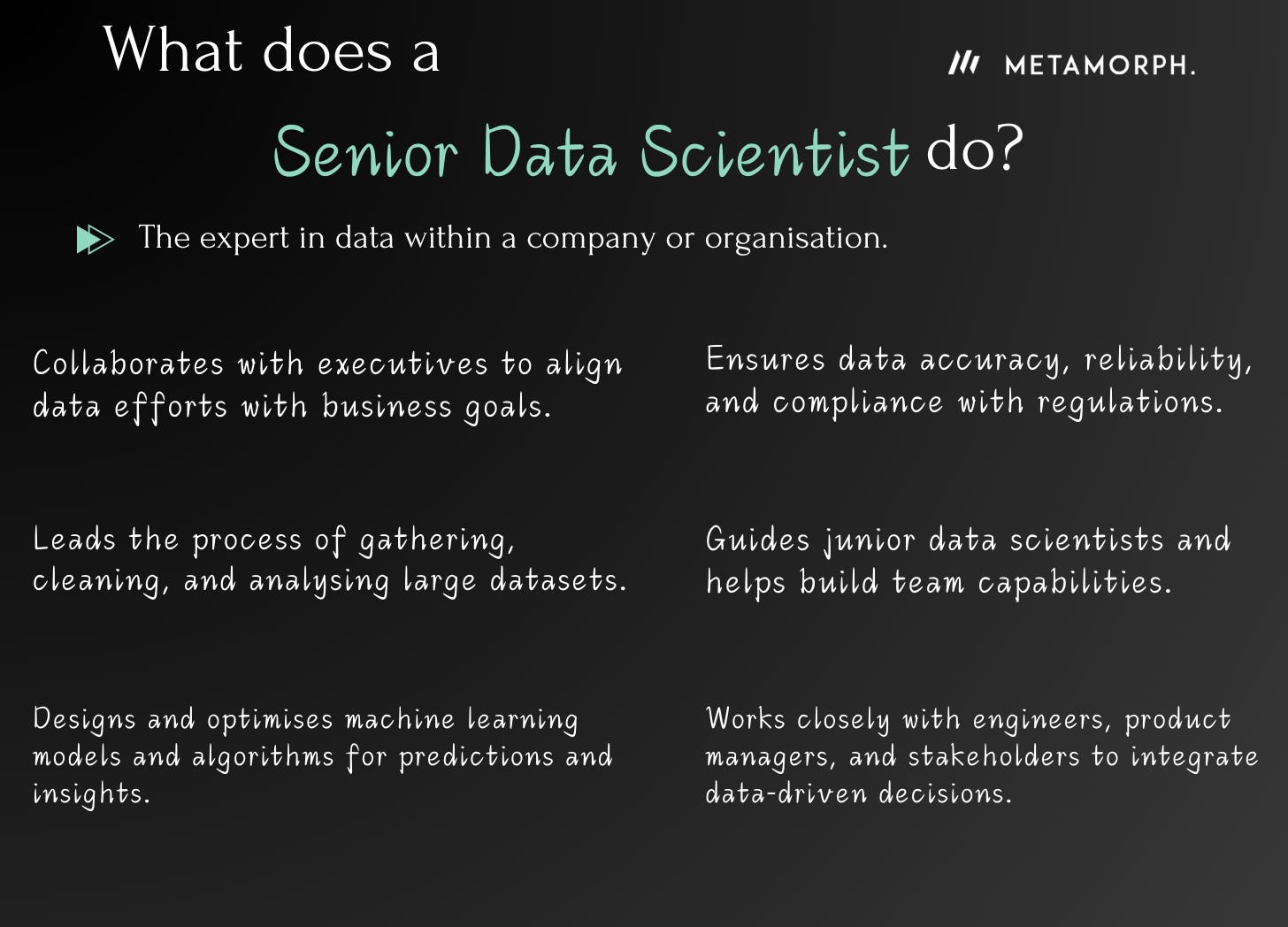 Senior Data Scientist: Data-driven decision-making becomes a priority. This role helps the company extract insights from customer behaviour and business performance.