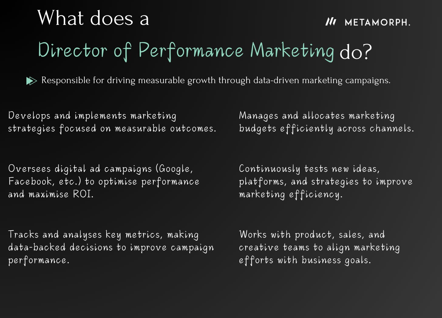 Director of Performance Marketing: Scaling customer acquisition requires specialised performance marketing expertise.