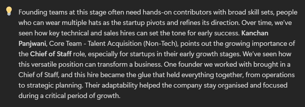 HR is another role that often gets overlooked in the early days. Ramakant also shared an instance where a founder was juggling everything—recruitment, strategy, operations—leaving them overwhelmed. By bringing in an HR lead early on, the founder offloaded a massive amount of work, allowing them to focus on scaling. This hire shaped both the employee and candidate experience, making a lasting impact on the Startups culture.