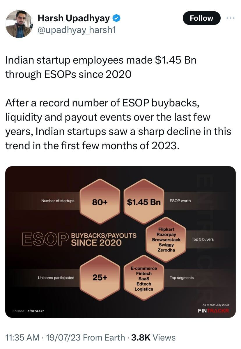 Here's something to pique your interest: Indian startup employees have made $1.45 billion through ESOPs since 2020.